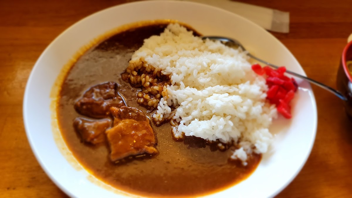 One of the restaurant's highlights is its ミニ八重山そば (Mini Yaeyama Soba), a local specialty that perfectly blends the savory flavors of Okinawa’s iconic soba noodles. Light yet flavorful, it’s an ideal dish to start your meal with, especially for those who enjoy a comforting bowl of noodles. If you're craving something a bit heartier, the アグー豚カレー (Agu Pork Curry) is a standout. Made with tender Agu pork, a prized breed native to Okinawa, the curry is rich and flavorful, offering a unique twist on a traditional Japanese dish.